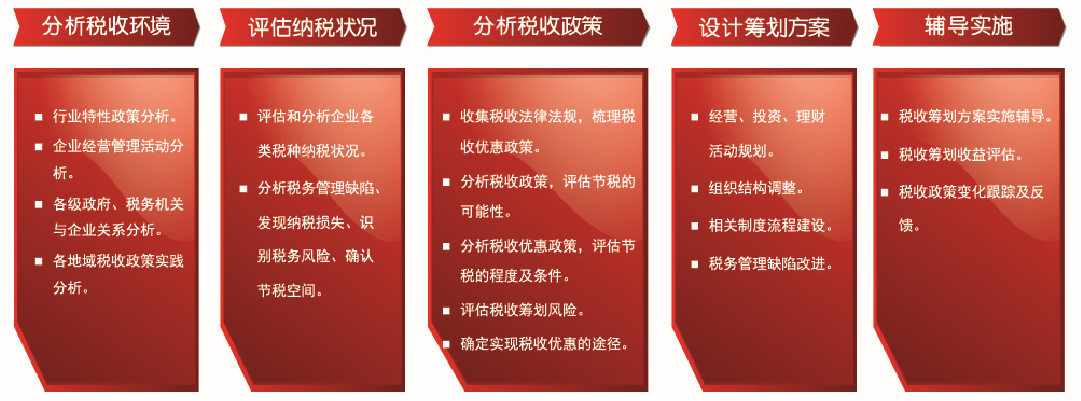 華夏經(jīng)緯以國(guó)家稅收法律法規(guī)為基礎(chǔ),通過(guò)對(duì)企業(yè)所處的稅收環(huán)境、納稅狀況、業(yè)務(wù)活動(dòng)進(jìn)行診斷,分析企業(yè)稅務(wù)管理工作不足,確認(rèn)節(jié)稅空間;分析稅收優(yōu)惠政策,對(duì)企業(yè)經(jīng)營(yíng)、投資、理財(cái)活動(dòng)進(jìn)行事先籌劃和安排,為企業(yè)設(shè)計(jì)稅收籌劃整體方案,確定實(shí)現(xiàn)的方式和途徑,并輔導(dǎo)企業(yè)實(shí)施,以降低納稅成本,取得節(jié)稅的經(jīng)濟(jì)利益,提升企業(yè)競(jìng)爭(zhēng)力。