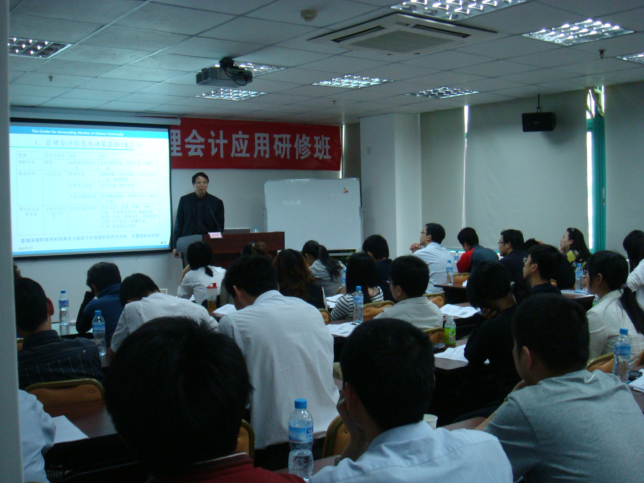 2010年4月29日下午到晚上,由廈門市總會(huì)計(jì)師協(xié)會(huì)主辦,華夏經(jīng)緯財(cái)務(wù)咨詢(廈門)有限公司承辦的“成本管理與管理會(huì)計(jì)應(yīng)用實(shí)務(wù)”高級(jí)研修班在廈門富興大廈8樓華夏經(jīng)緯培訓(xùn)室成功開班。