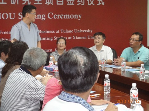 座談會(huì)在廈門大學(xué)會(huì)計(jì)發(fā)展研究中心會(huì)議廳舉行。參加接待的主要有:廈門市總會(huì)計(jì)師協(xié)會(huì)副會(huì)長(zhǎng)、廈門市外商投資企業(yè)會(huì)計(jì)學(xué)會(huì)會(huì)長(zhǎng)、廈門大學(xué)管理學(xué)院會(huì)計(jì)系教授、廈門大學(xué)會(huì)計(jì)發(fā)展研究中心副主任陳少華教授;廈門市總會(huì)計(jì)師協(xié)會(huì)副會(huì)長(zhǎng)兼秘書長(zhǎng)何渝文;廈門市總會(huì)計(jì)師協(xié)會(huì)常務(wù)理事、華夏經(jīng)緯財(cái)務(wù)咨詢(廈門)有限公司總裁游相華博士。會(huì)議由何渝文副會(huì)長(zhǎng)主持,游相華博士致歡迎辭。
