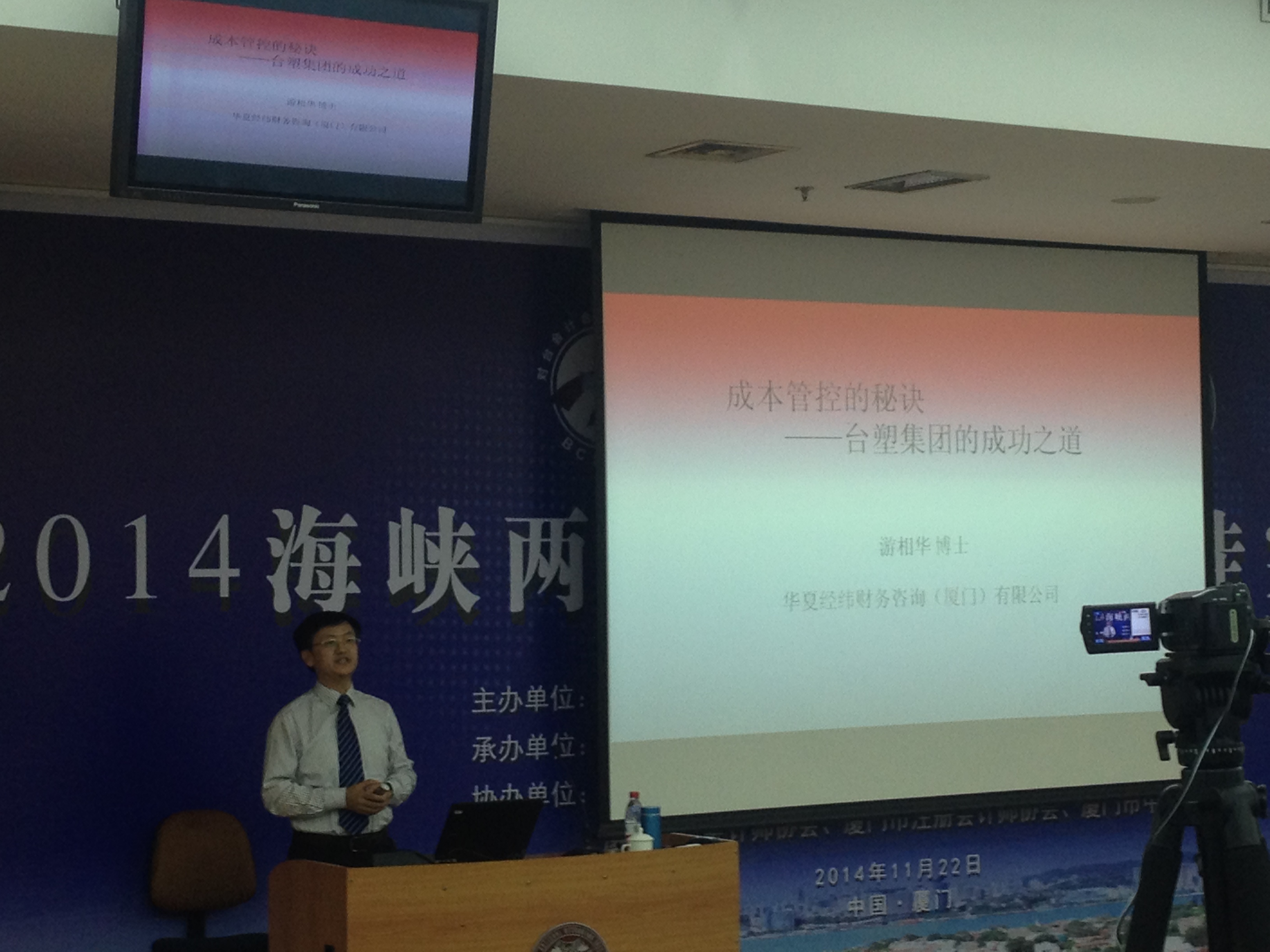 2014年11月22日,由對(duì)臺(tái)會(huì)計(jì)合作與交流基地主辦的“2014海峽兩岸管理會(huì)計(jì)最佳實(shí)踐論壇”在廈門(mén)國(guó)家會(huì)計(jì)學(xué)院教學(xué)樓104報(bào)告廳順利舉行。論壇邀請(qǐng)了財(cái)政部、學(xué)術(shù)界、企業(yè)界的嘉賓分別做專(zhuān)題演講,我司董事長(zhǎng)游相華博士應(yīng)邀做“成本管控的秘訣—臺(tái)塑集團(tuán)的成功之道”的專(zhuān)題演講。